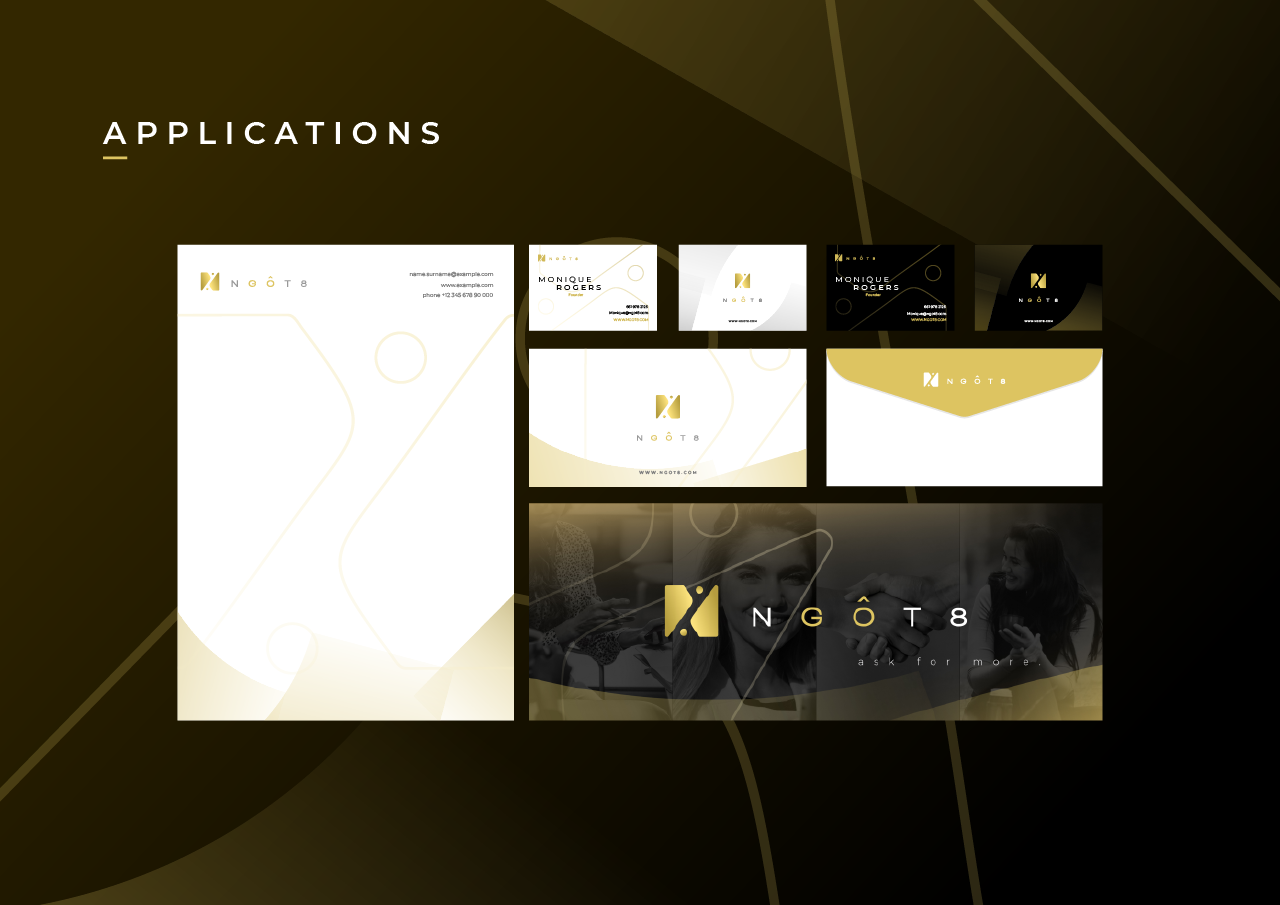 NGOT8 is the name of the company. Looking for creative ideas that are edgy and fun. Even using the N backwards Our target audience are females 18-40 middle to upper class. College educated. Sophisticated and intelligent. Executive level, employed, married or single. Most have families.